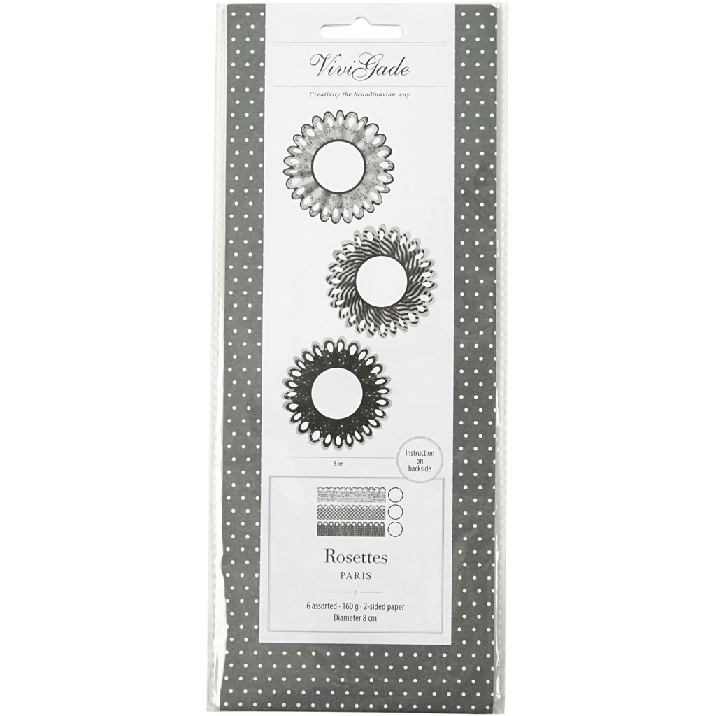 Materialset für 6 Rosetten im Vivi Gade Design. Pck. mit 3 Varianten à 2 Stck. inkl. 0,5 m Kordel zm Aufhängen