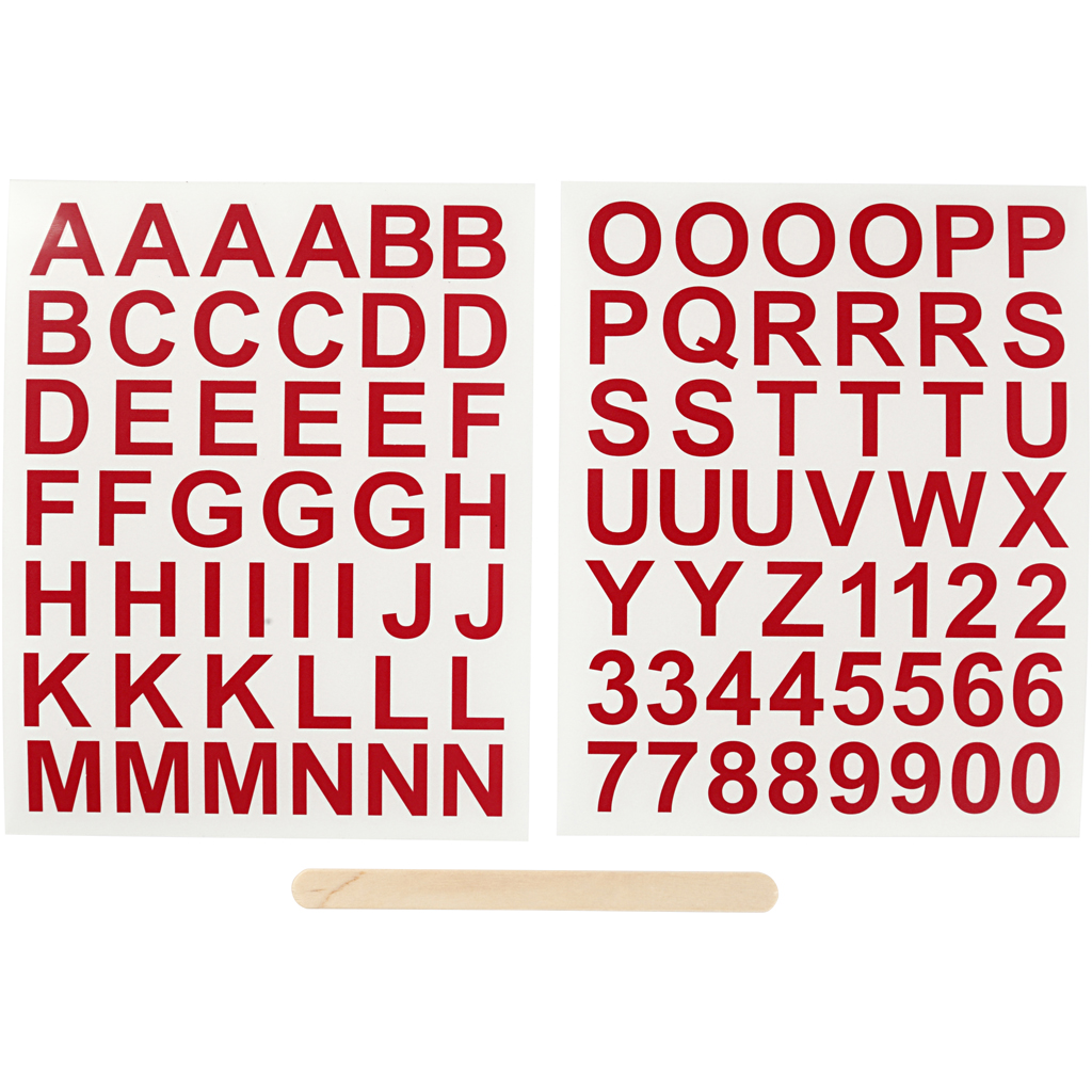 Rub-on Stickers, Buchstaben & Zahlen, H 17 mm, B 17 mm, Blatt 12,2×15,3 cm, Rot, 1 Pck
