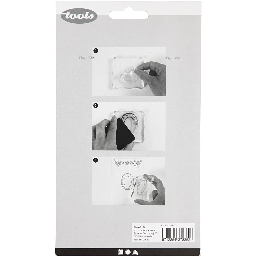 Bogen mit verschd. Stempelmotiven aus transparentem Silikon – selbstklebend – mit Acrylblock als Unterlage (Art. Nr. 21586, 21587 oder 21588) lassen sich die Motive als Stempel verwenden