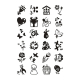Bogen mit verschd. Stempelmotiven aus transparentem Silikon – selbstklebend – mit Acrylblock als Unterlage (Art. Nr. 21586, 21587 oder 21588) lassen sich die Motive als Stempel verwenden