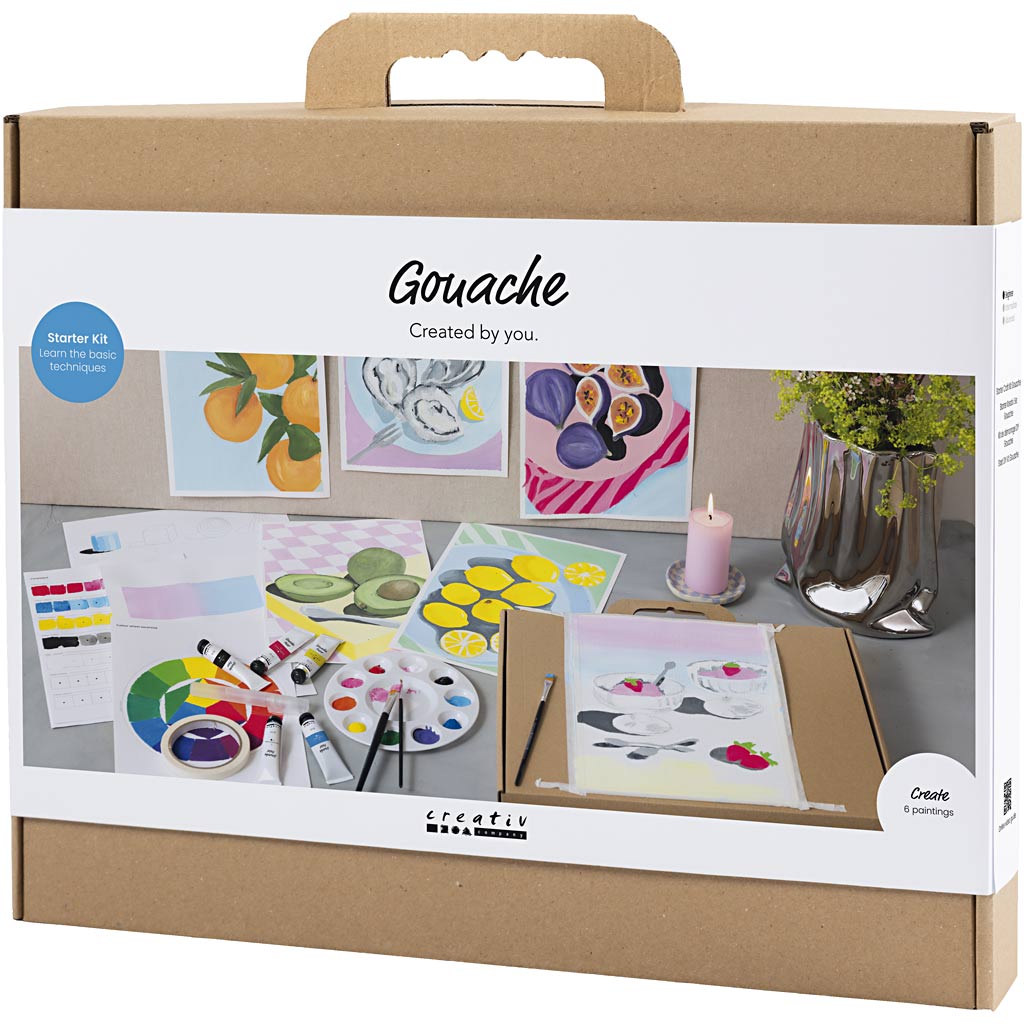 Mit unserer Creativity in a Box lernen Sie den Umgang mit der beliebten Gouachefarbe, die bei vielen Künstlern sehr beliebt ist. Das Set enthält Materialien zum Anfertigen von sechs Bildern und alle benötigten Anleitungen