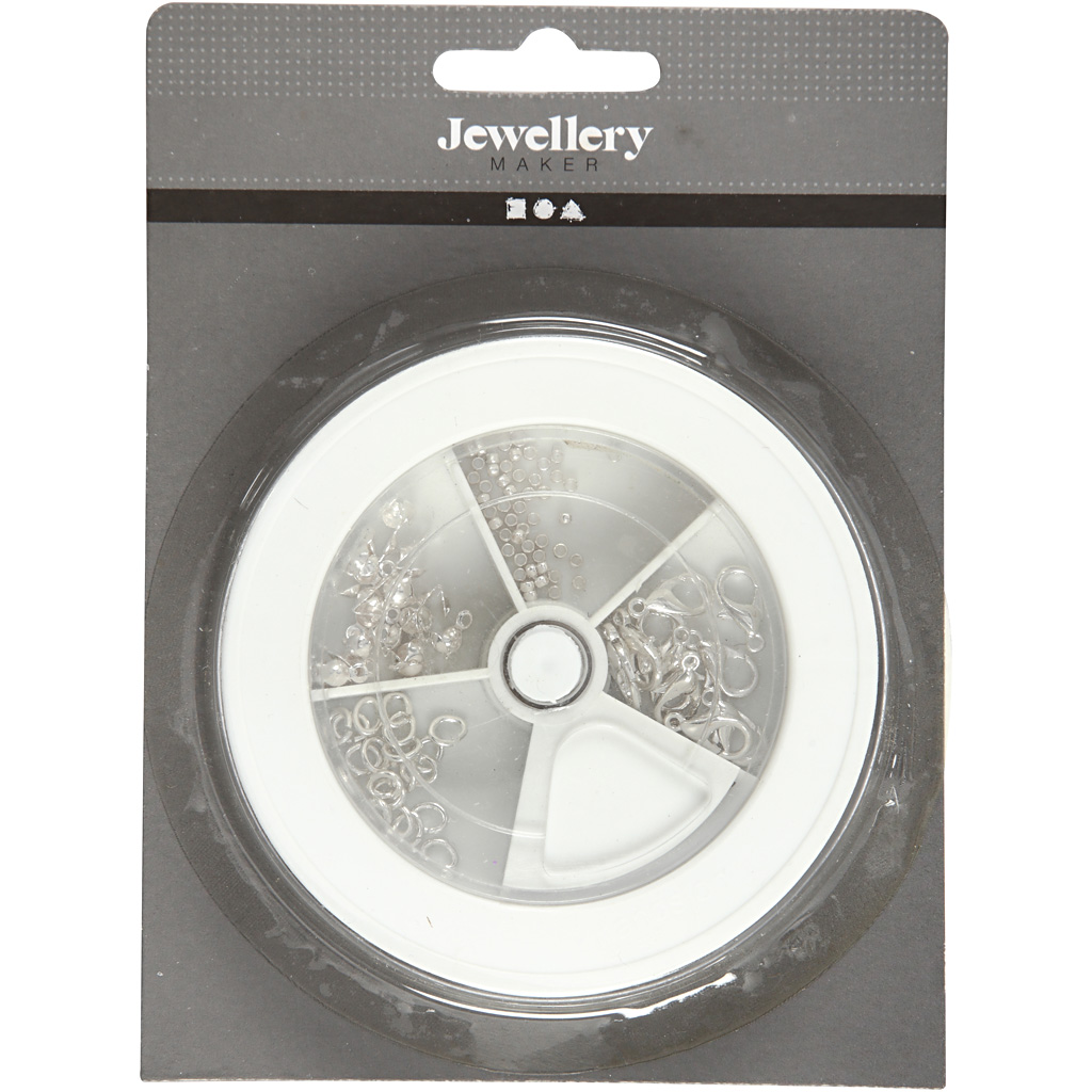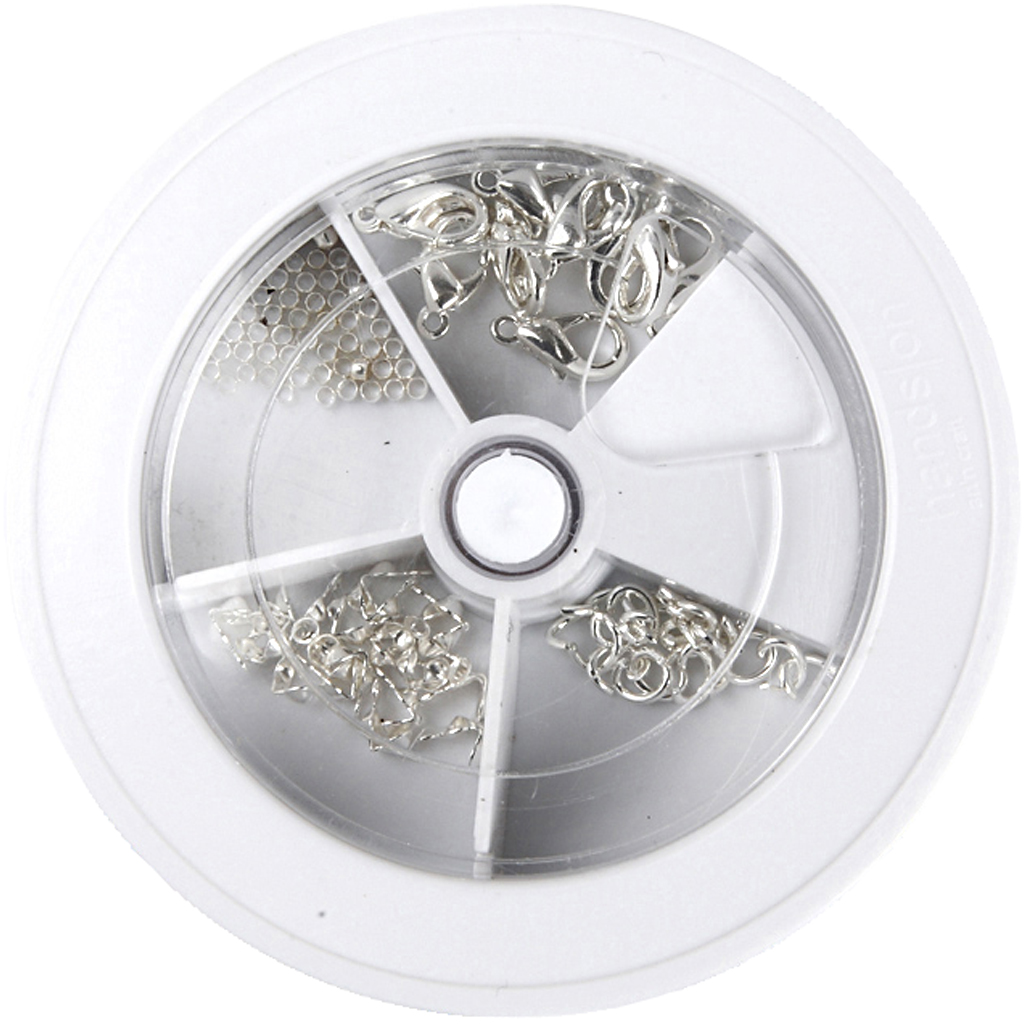 Das Set enthält verschiedene Arten von Schmuckbeschlägen, die Sie zum Befestigen und Schließen von Ketten mit Perlengarn oder Lederschnüren benötigen