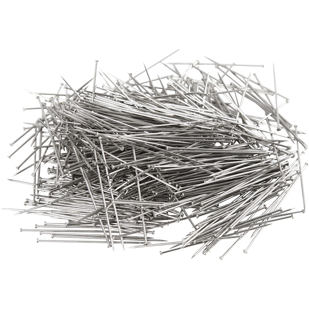 Stecknadeln, L 34 mm, Dicke 0,6 mm, ca. 600 Stk, Silber, 50 g/ 1 Pck