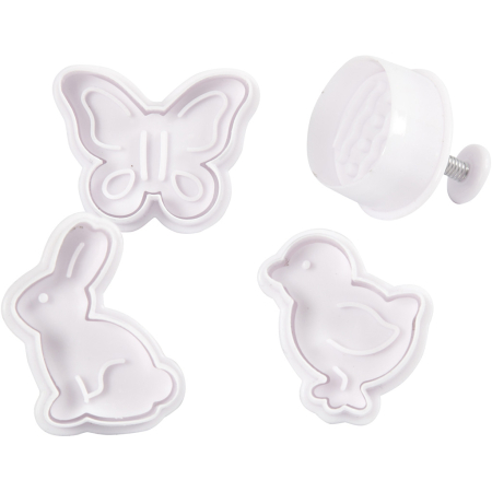 Ausstecher mit Stempelgriff, Osterei, Häschen, Küken, Schmetterling, H 5 cm,...