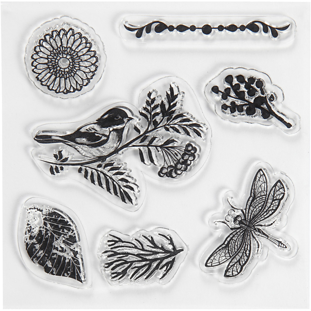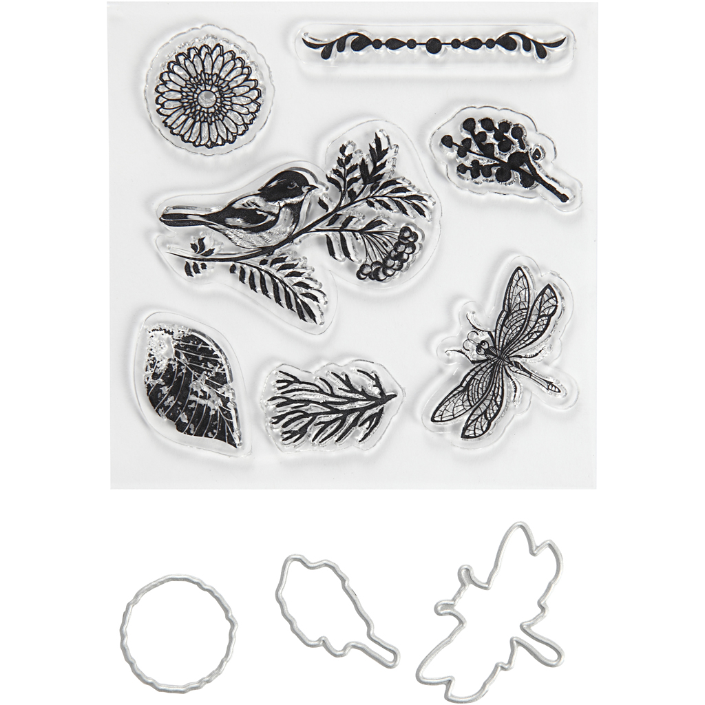 Set aus transparenten Silikonstempeln, die mit den mitgelieferten Stanzformen kombiniert werden können. Zum Stanzen von Karton, Papier etc.- zu benutzen mit Stanz- und Prägegerät Artikel-Nr. 11761, 11792, 11799