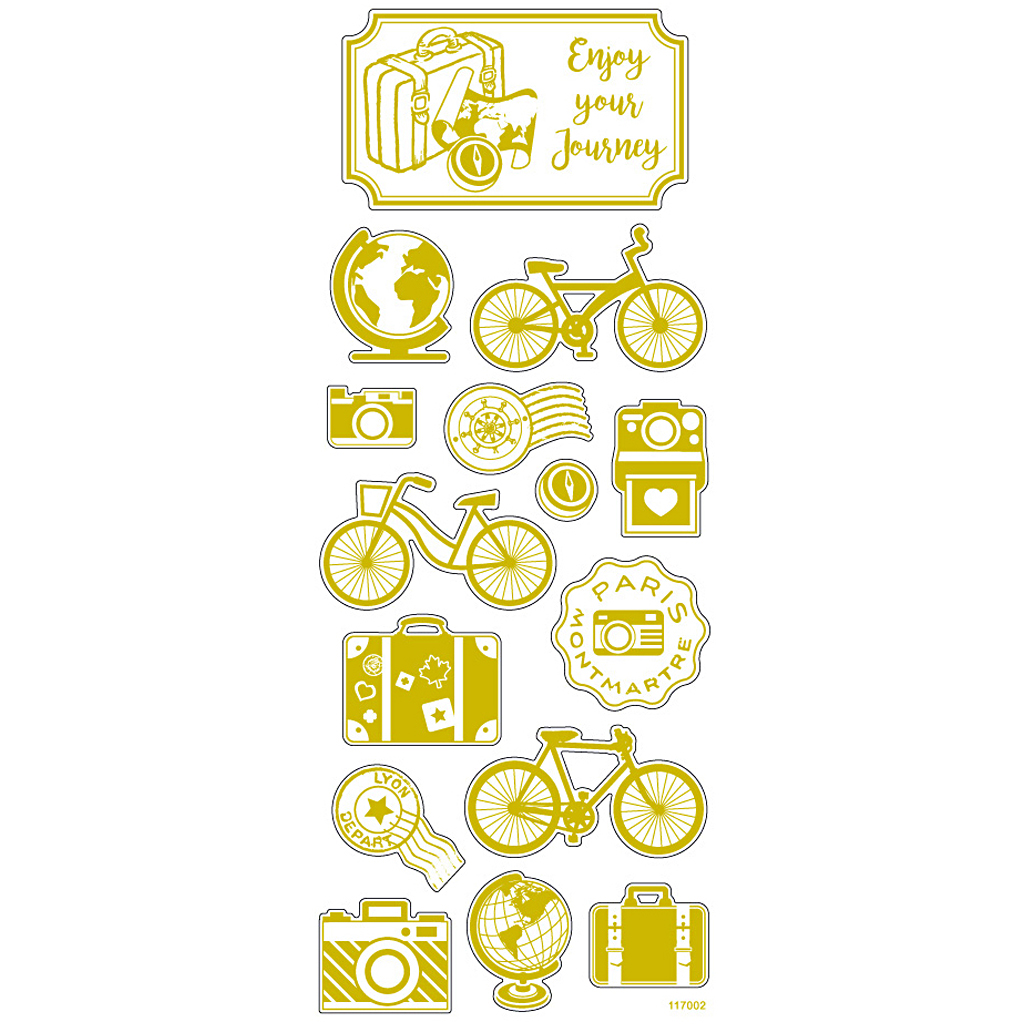 Sticker 'Thank you', Rund um die Welt, Blatt 10x24 cm, ca. 15 Stk, Gold, 1 Bl.
