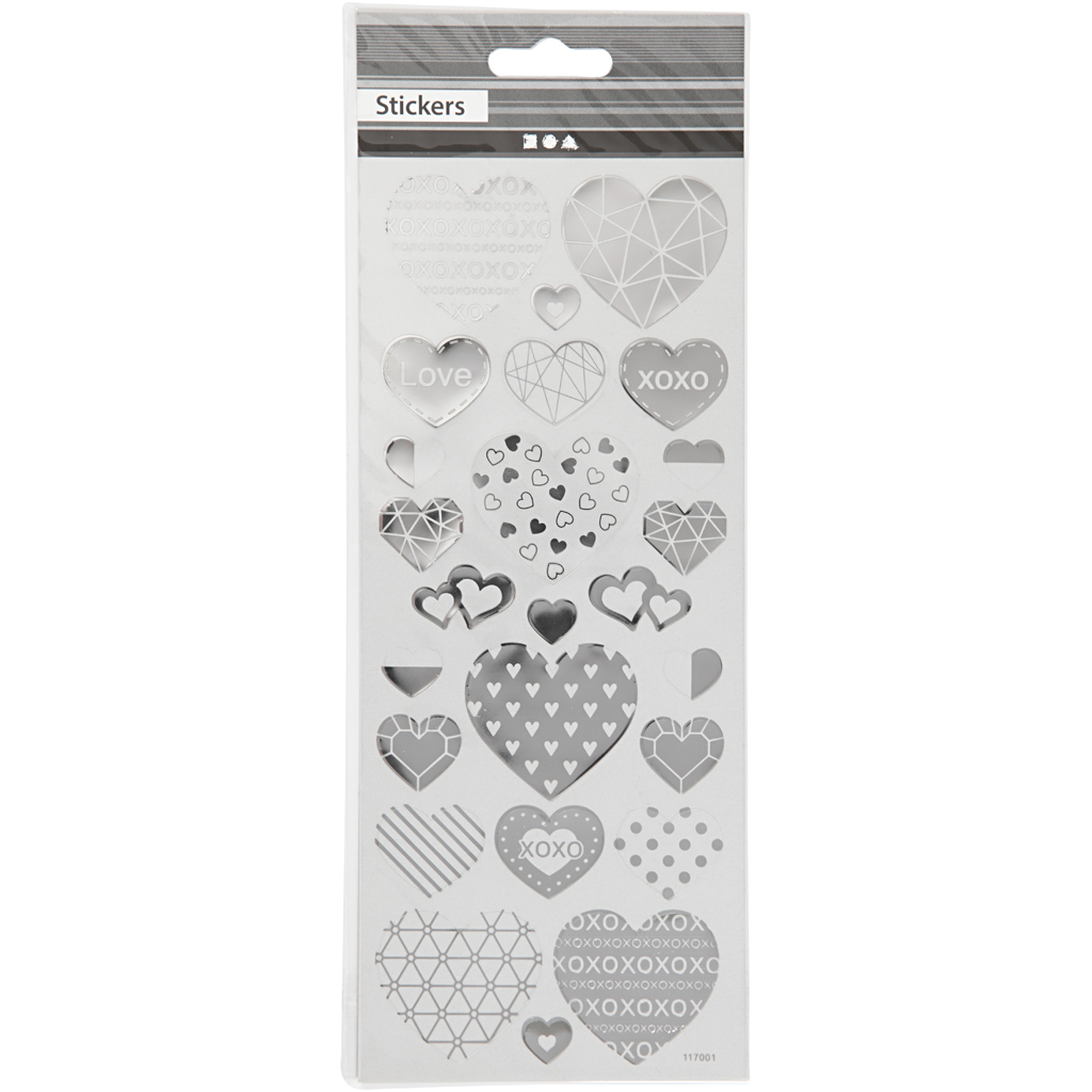 Stickers, Herzen, Blatt 10×24 cm, ca. 25 Stk, Silber, 1 Bl.