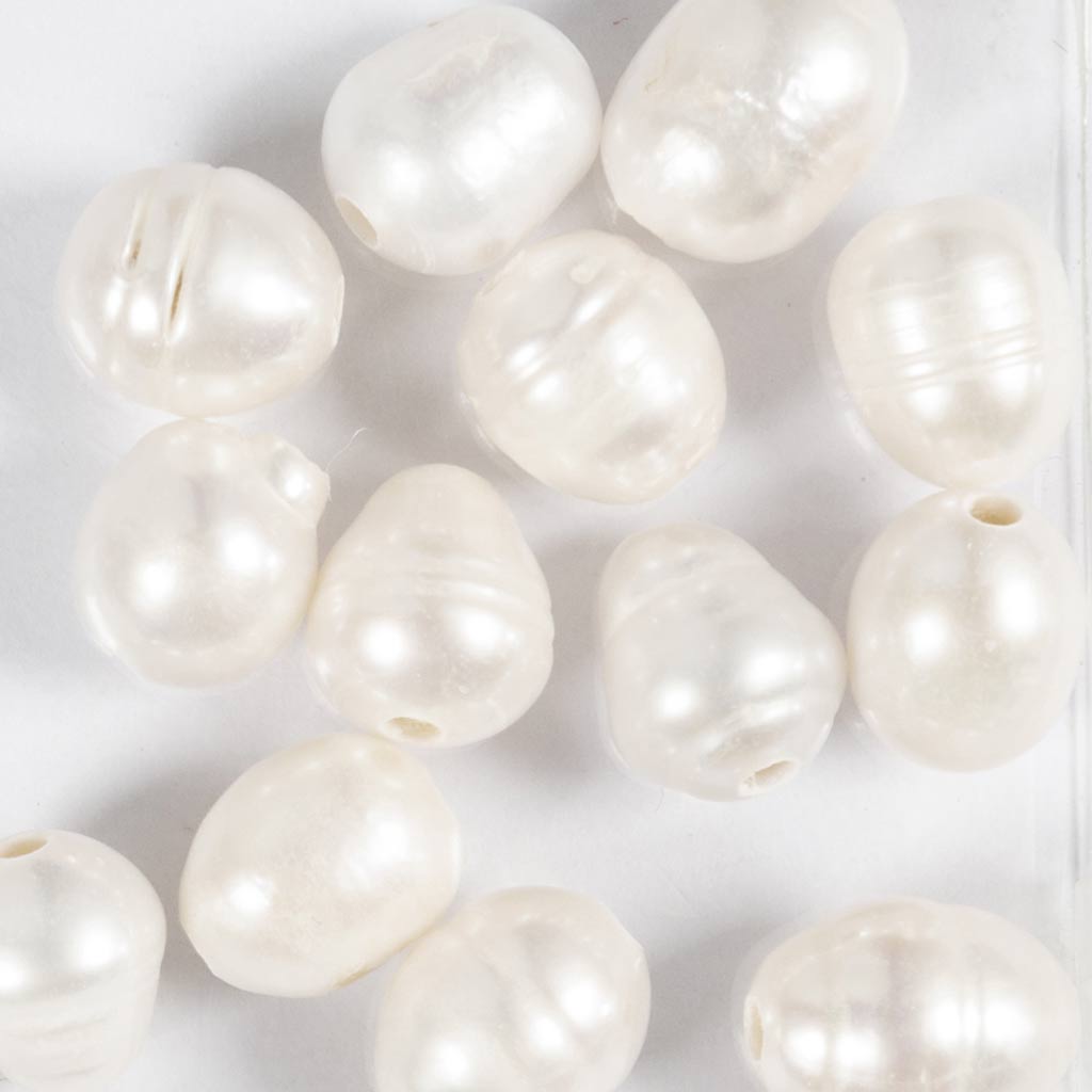 Süßwasserperlen, Längs perforiert, D 9-11 mm, Lochgröße 2 mm, Perlmutt, 13 Stk/ 1 Pck