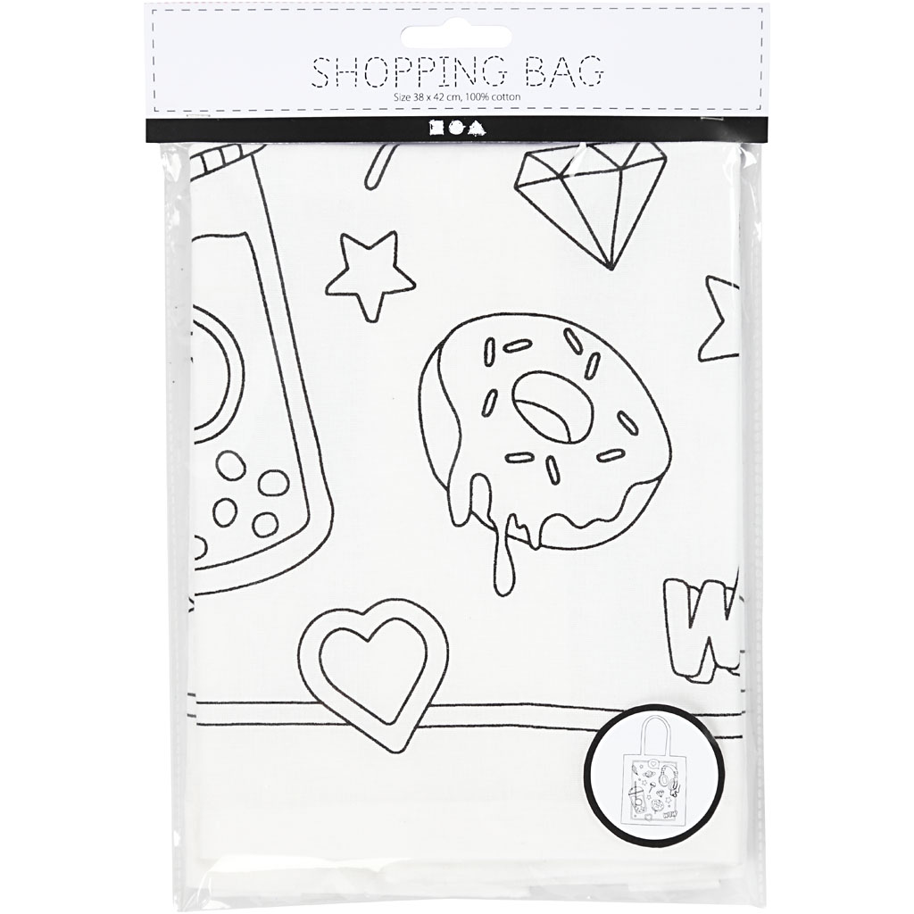 Tragetasche aus 100 % Baumwolle mit vorgedruckten Motiven zum Ausmalen