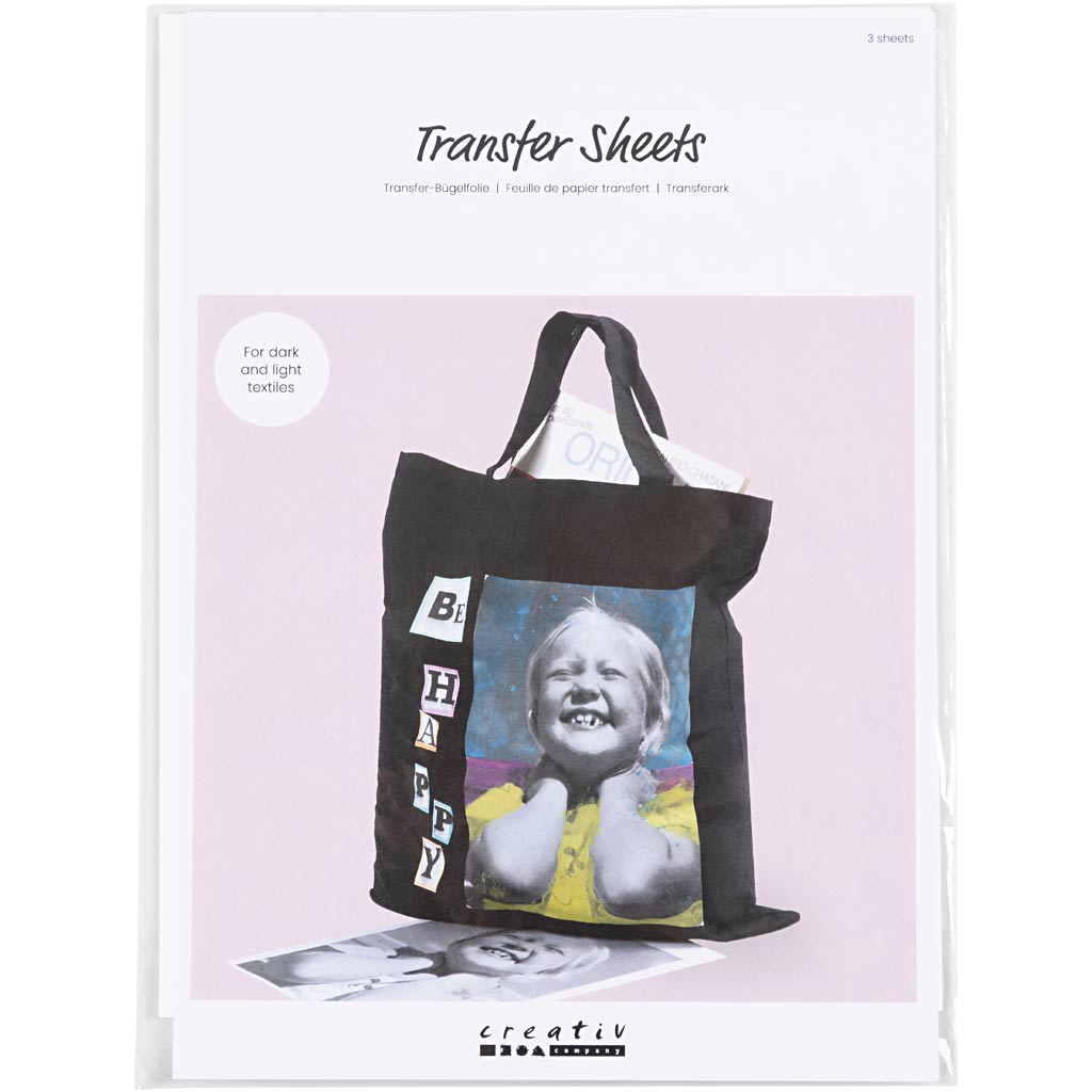 Transfer-Bügelfolie, Blatt 21,5x28 cm, für helle und dunkle Textilien, Weiß, 3 Bl./ 1 Pck