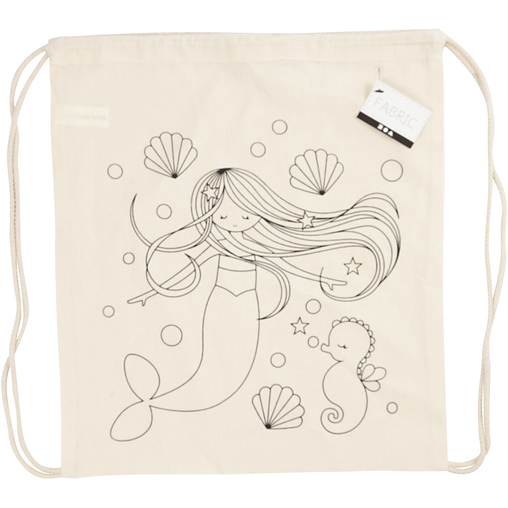 Seien Sie kreativ und bearbeiten Sie die einseitig vorgedruckten schwarzen Motive auf dem Stoffbeutel mit Textilmarkern in Farben Ihrer Wahl oder mit Stofffarben. Der Beutel besteht aus 100% Baumwolle und wird mit einem Kordelzug verschlossen. So ist er leicht über der Schulter zu tragen