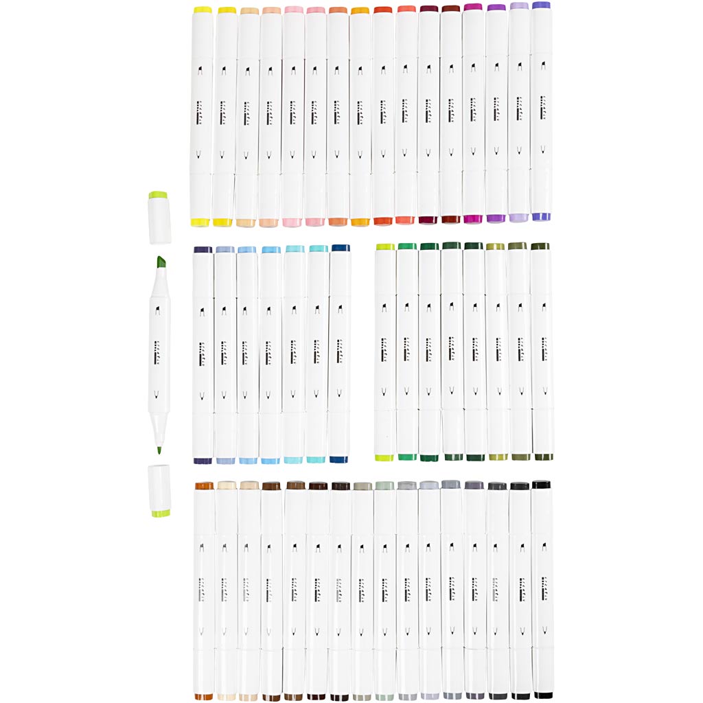 Hochwertiger 2-in-1-Marker auf Alkoholbasis, die Farbe trocknet dauerhaft und semitransparent. Der Marker ist Ihr idealer Zeichenstift – auch wenn Sie an Illustrationen arbeiten oder einfach nur scharf konturierte Zeichnungen auf weißem Papier malen möchten