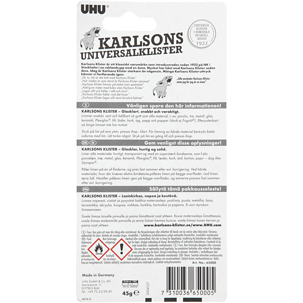 Der klassische Alleskleber für Papier, Kunststoff, Pappe, Holz, Leder, Glas und Porzellan