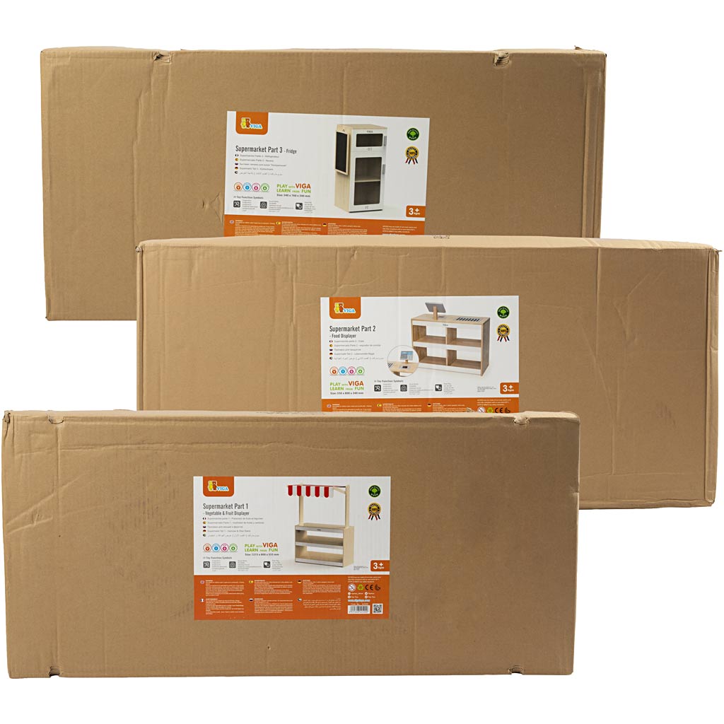Baue einen perfekten Lebensmittelladen mit Kühlvitrinen, Theke und Lebensmittelstand. Nach dem Aufbauen bieten die drei Teile jede Menge Gelegenheiten für Rollenspiele.