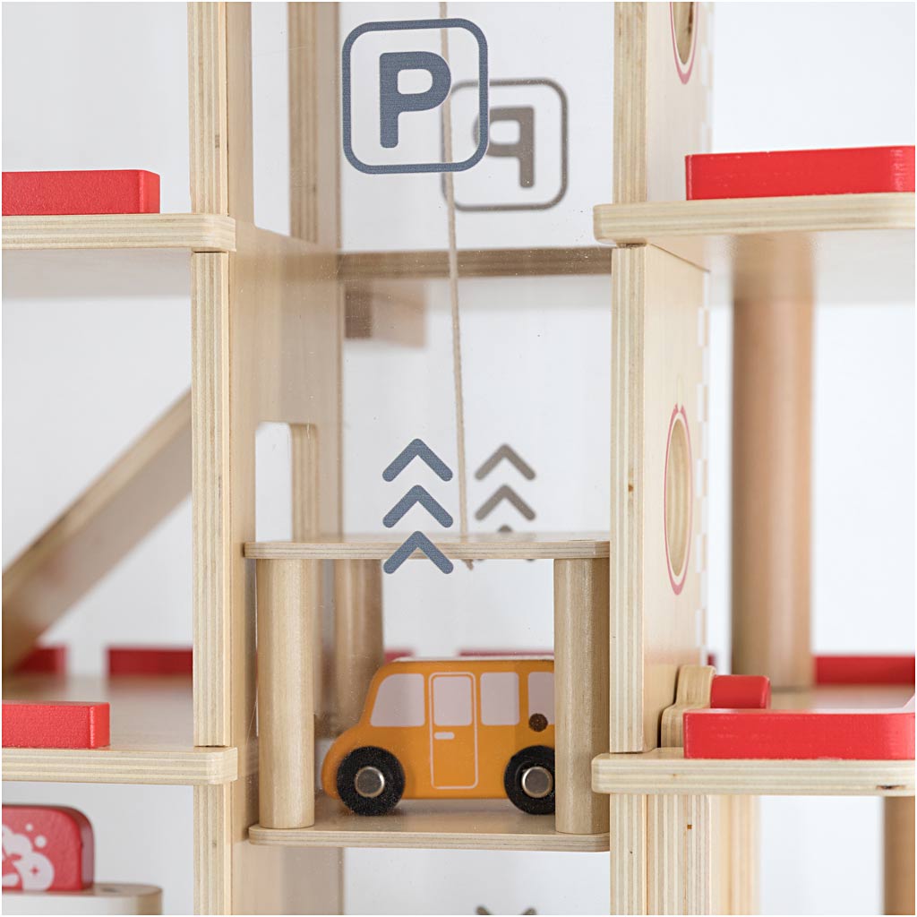 Coole mehrstöckige Garage mit Rampen, Lift, Tankstelle, 4 Autos und einem Helikopter. Ein fantastisches Spielzeug für jedes Kind, das Autos liebt. Stimuliert Fantasie, Koordination und Spielfreude