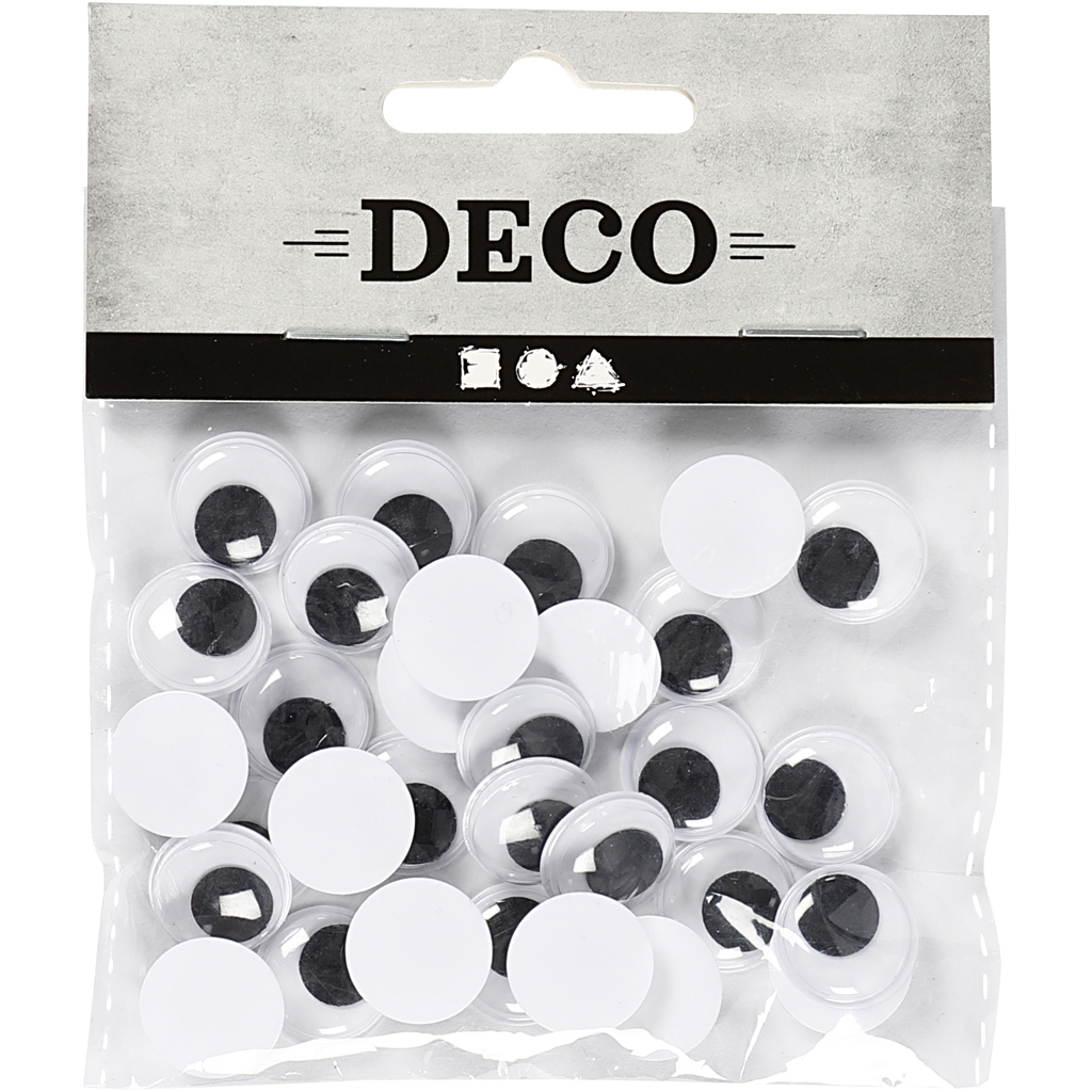 Wackelaugen mit beweglichen Pupillen, die Sie für alles verwenden können, was einen lustigen Look bekommen soll. Die Augen haben eine flache, nicht klebende Rückseite