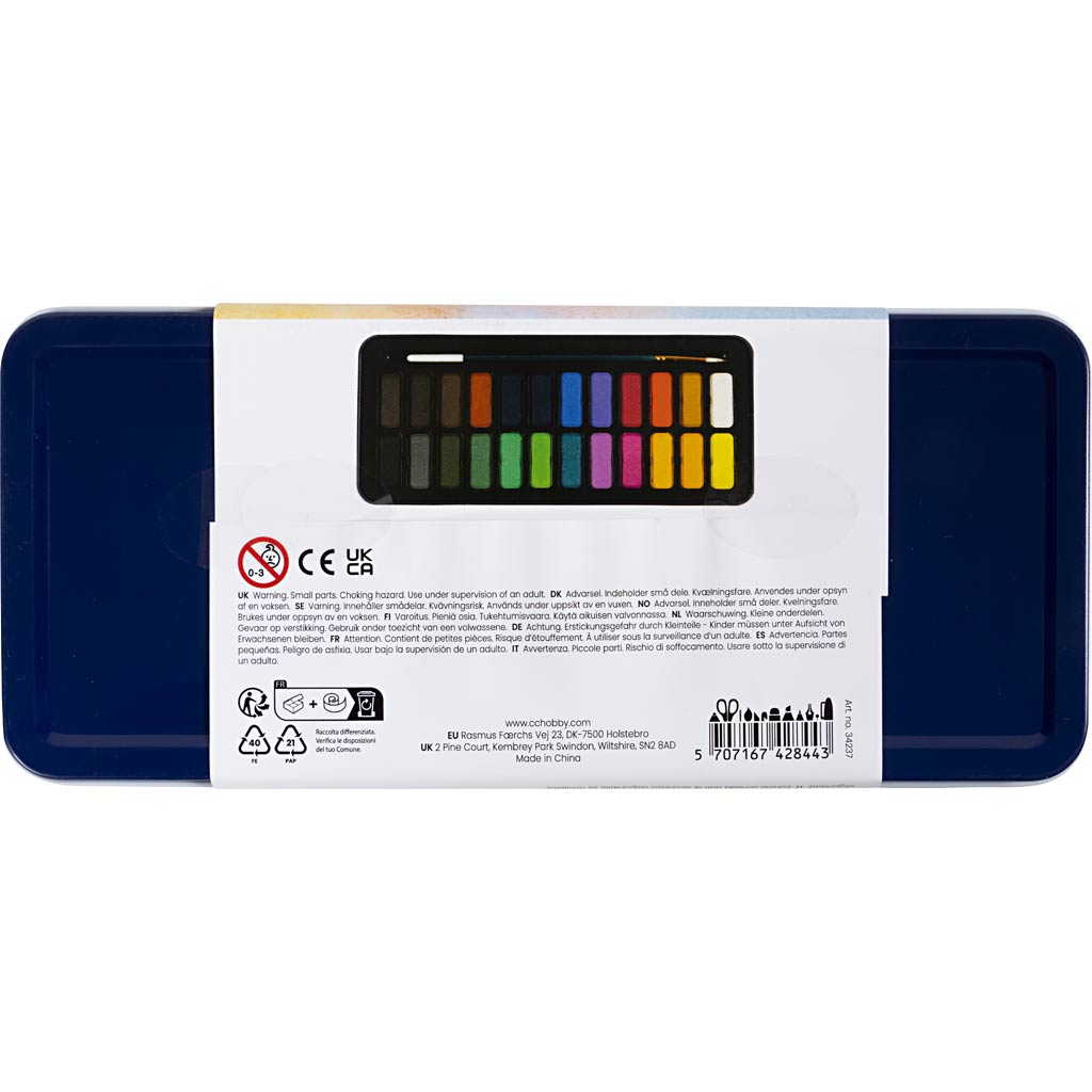 Wunderschöne Wasserfarben mit hoher Pigmentierung. Mit Pinsel und Deckel, der als Mischpalette verwendet werden kann. Perfekt für alle, die gerne malen – auch unterwegs