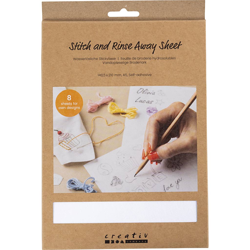 Wasserlösliche Stickvliese, A5, Blatt 148,5×210 mm, Weiß, 8 Bl./ 1 Pck