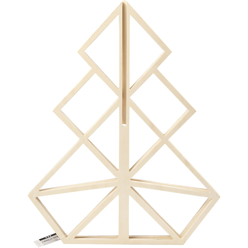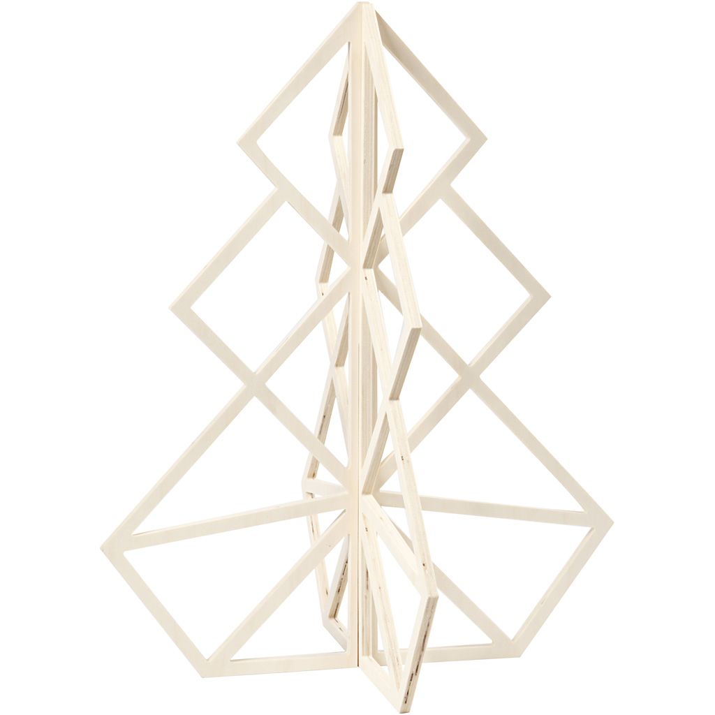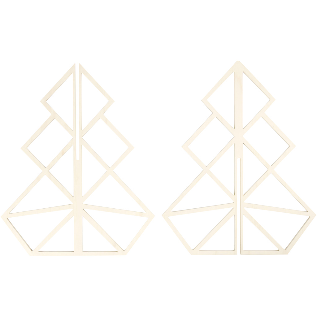Heller Weihnachtsbaum als geometrische Figur aus 3 mm dickem Holz – bestehend aus 2 ineinandergesteckten Teilen
