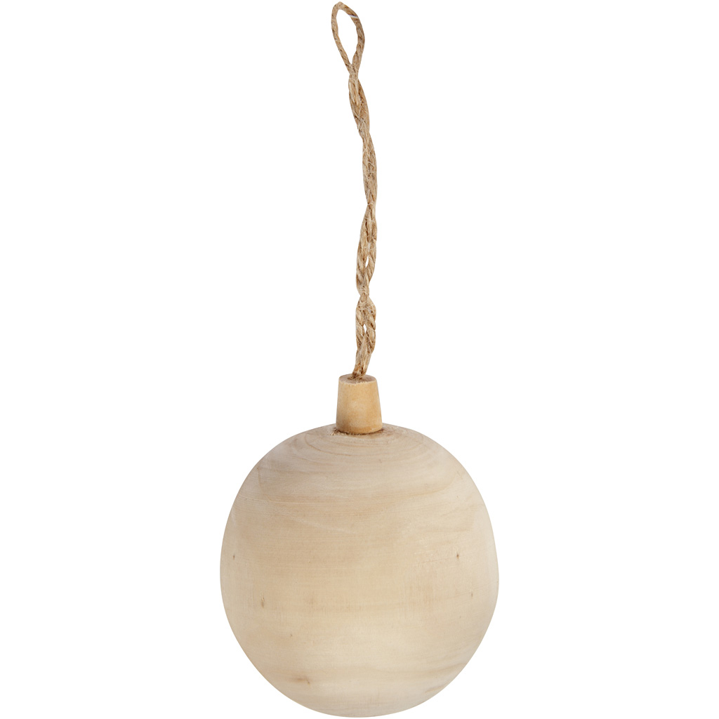 Kugel aus hellem Holz mit Schnur zum Aufhängen